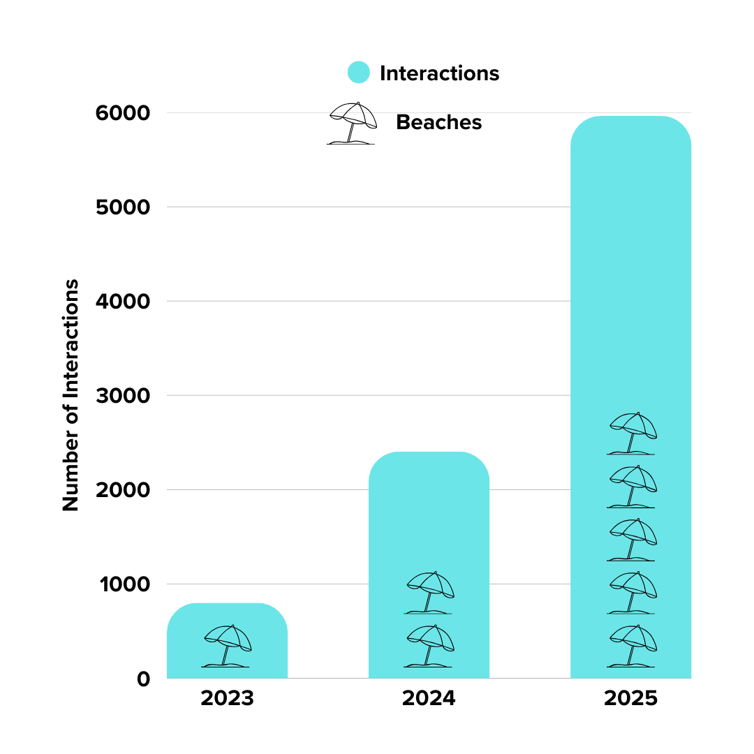 The number of interactions with beachgoers has increased from 800 in 2023 to 6,000 in 2025. We’ve also expanded from one King County beach in 2023 to five in 2025.