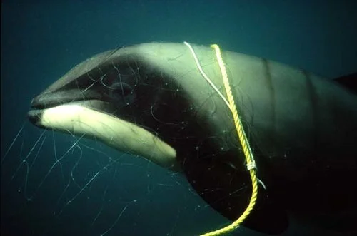 Researchers say most of these species are killed by gillnets. Made of monofilament (single-strand) nylon mesh, gillnets are difficult for dolphins and porpoises to see or detect with their sonar.