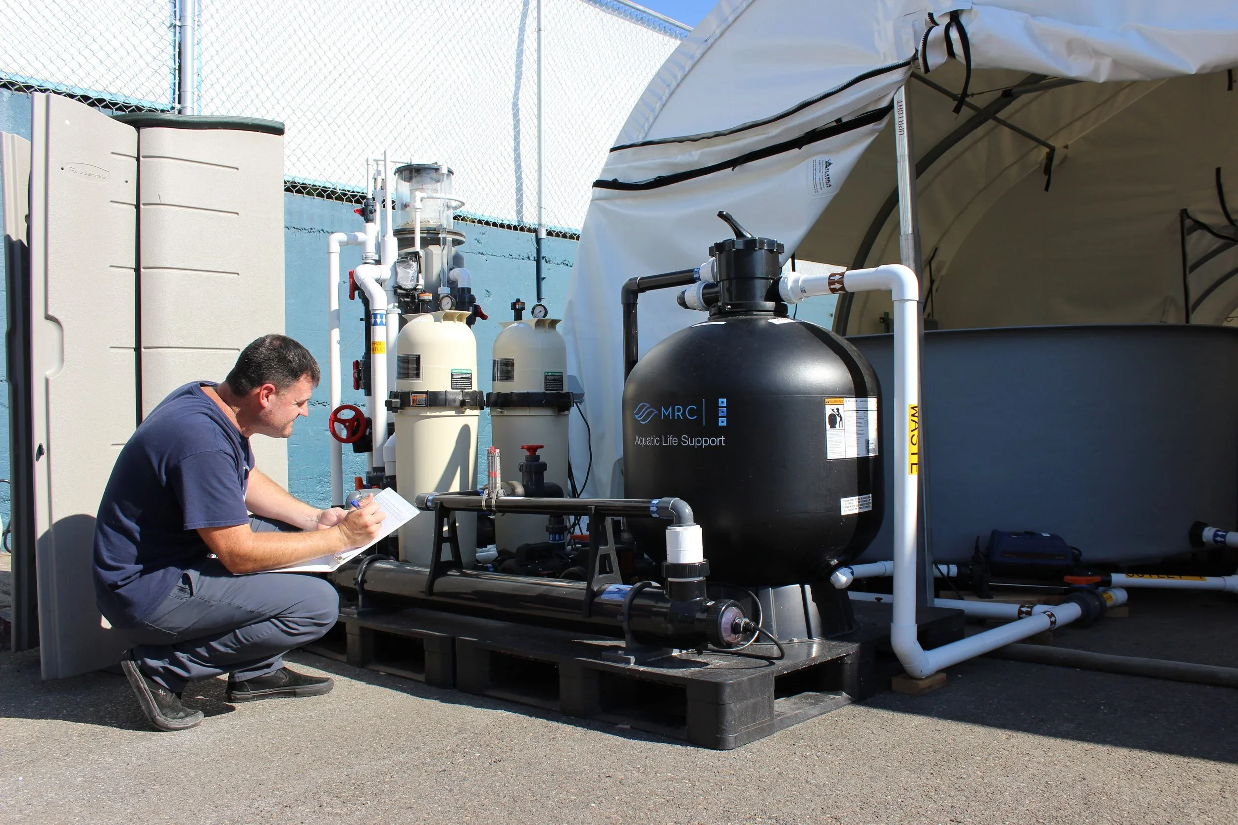 John records water quality data from one of our pool filtration systems at the Rescue Center.