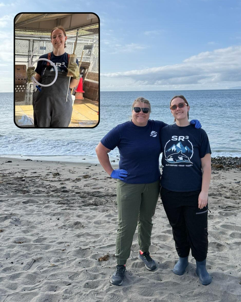 SR3 staff in California - Sydney, Animal Husbandry Technician, prepping for a sea lion feed, along with Sydney and Dr. Michelle Rivard, a past SR3 veterinarian who is now Marine Mammal Care Center’s Director of Animal Health & Conservation, on the beach for a patient release.