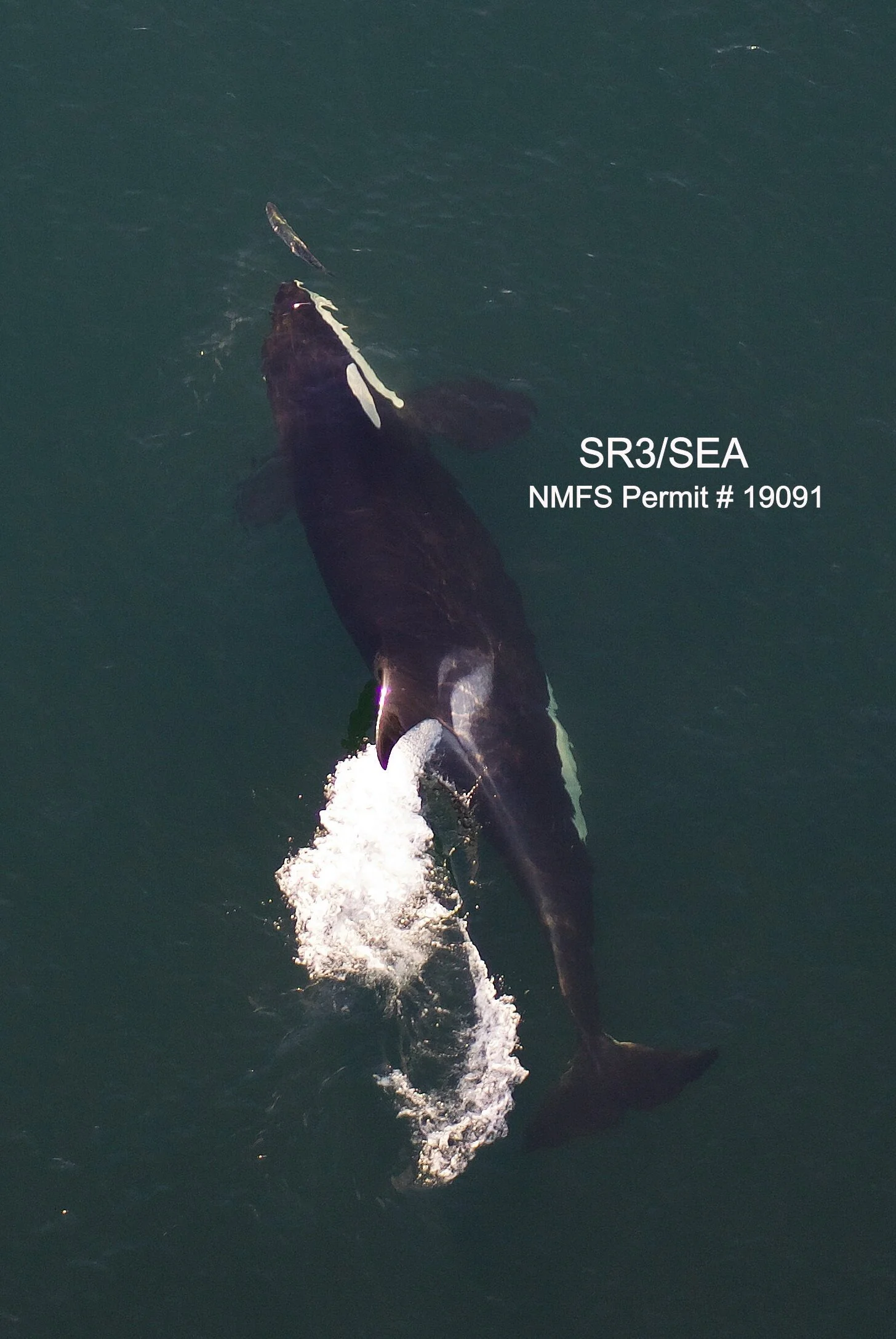 After several months away, members of J and K pod from the endangered Southern Resident killer whale population returned to the San Juan Islands. After being sighted early last week off Northern Vancouver Island, SR3’s Dr. Holly Fearnbach and Dr. John Durban (Southall Environmental Associates, SEA) were able to intercept members of K pod as they briefly passed through the San Juan Islands on July 1st. The team flew their remotely controlled octocopter drone over 10 whales from the K12 and K13 matrilines to collect aerial images to contribute to our ongoing research to monitor growth and assess body condition. Holly and John have collected aerial images and all 22 members of J-pod (see picture below of J16 capturing a salmon). The team will continue collecting data on the nutritional health of Southern Resident killer whales through the summer, particularly during their usual focused month-long effort in September, to help inform management decisions to aid in the recovery of the population.