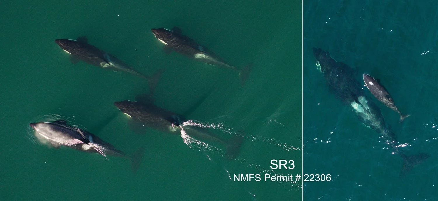Since the turn of the year, SR³’s Dr. Holly Fearnbach and Dr. John Durban have had several encounters with endangered Southern Resident killer whales (SRKWs), most recently in April. Using their remotely controlled octocopter drone, they have been able to collect aerial images of all members (n=25) of J pod, including the new calf J59, and 23/33 members of L pod. These aerial images are currently being measured to provide quantitative data on their body condition during winter and spring, allowing the team to monitor changes across seasons and years. These data will be provided to state and federal managers in both the US and Canada to help inform adaptive conservation measures, which could include seasonal changes in vessel regulations if whales are found to be in vulnerable condition.