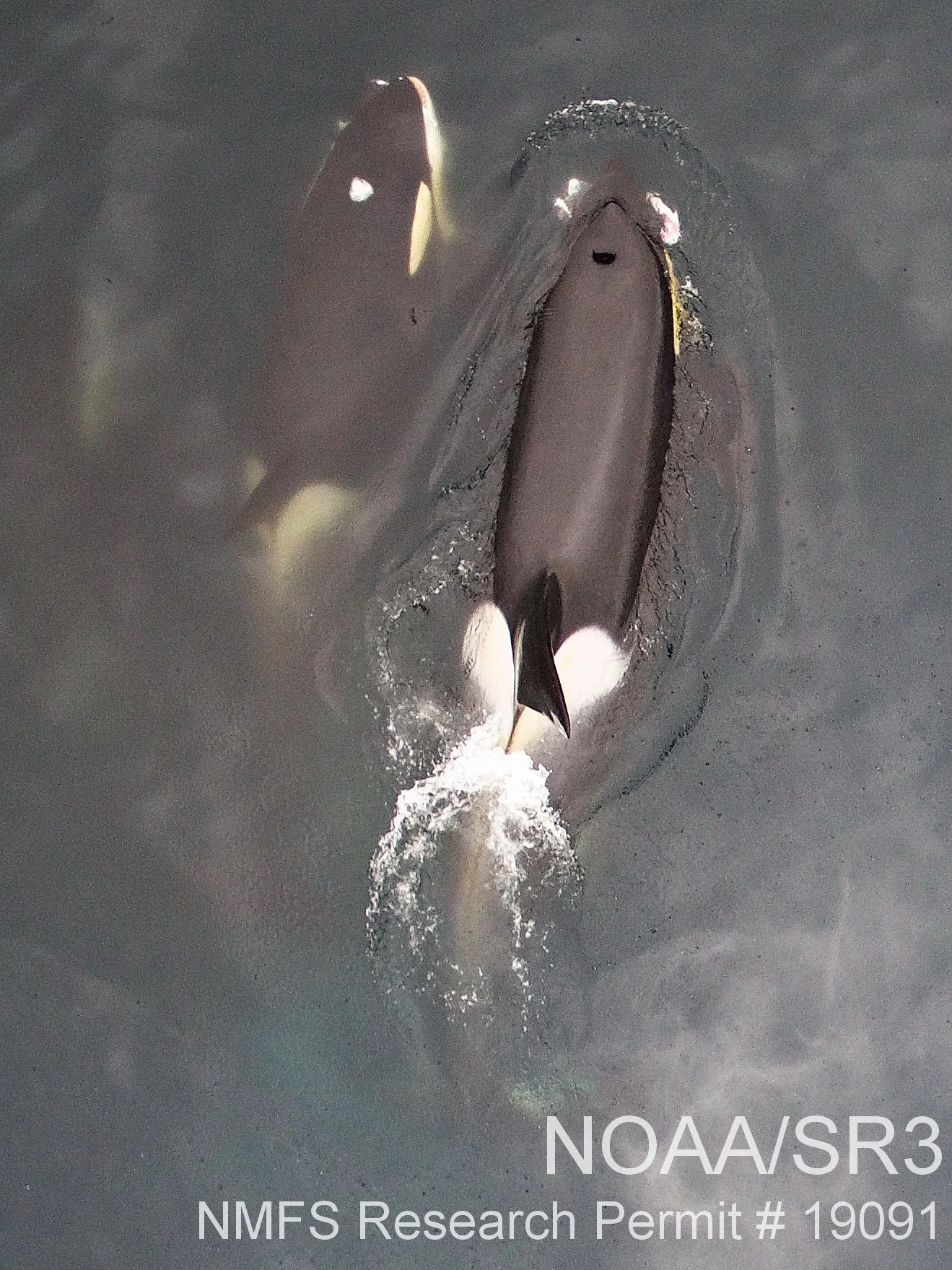 Aerial photograph of a group of Type B2 killer whales in the coastal waters of the Antarctic Peninsula; note young calves swimming below their mothers. Images were collected from >30m (100ft) above the whales using a small unmanned hexacopter. Research conducted under NMFS Permit No. 19091 and Antarctic Conservation Act Permit ACA 2017-029.