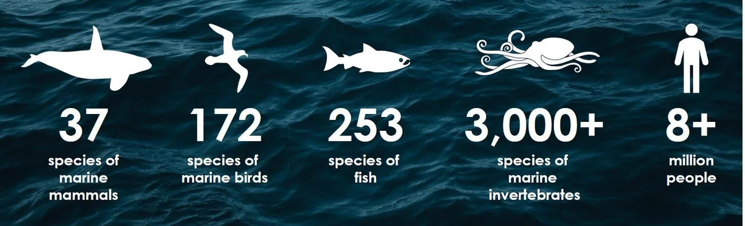 More than 3,400 marine species and 8 million people call the Salish Sea home. Unless you are a diver, the animals you see most often are those who operate at the surface: graceful Humpback, Minke and Gray whales; agile killer whales, Dall’s porpoises, and Pacific white-sided dolphins; immense sea lions and ubiquitous seals; meticulously-groomed sea otters; bright-beaked Tufted puffins. These are some of the iconic species that captivate us and symbolize our culture in the Pacific Northwest.
