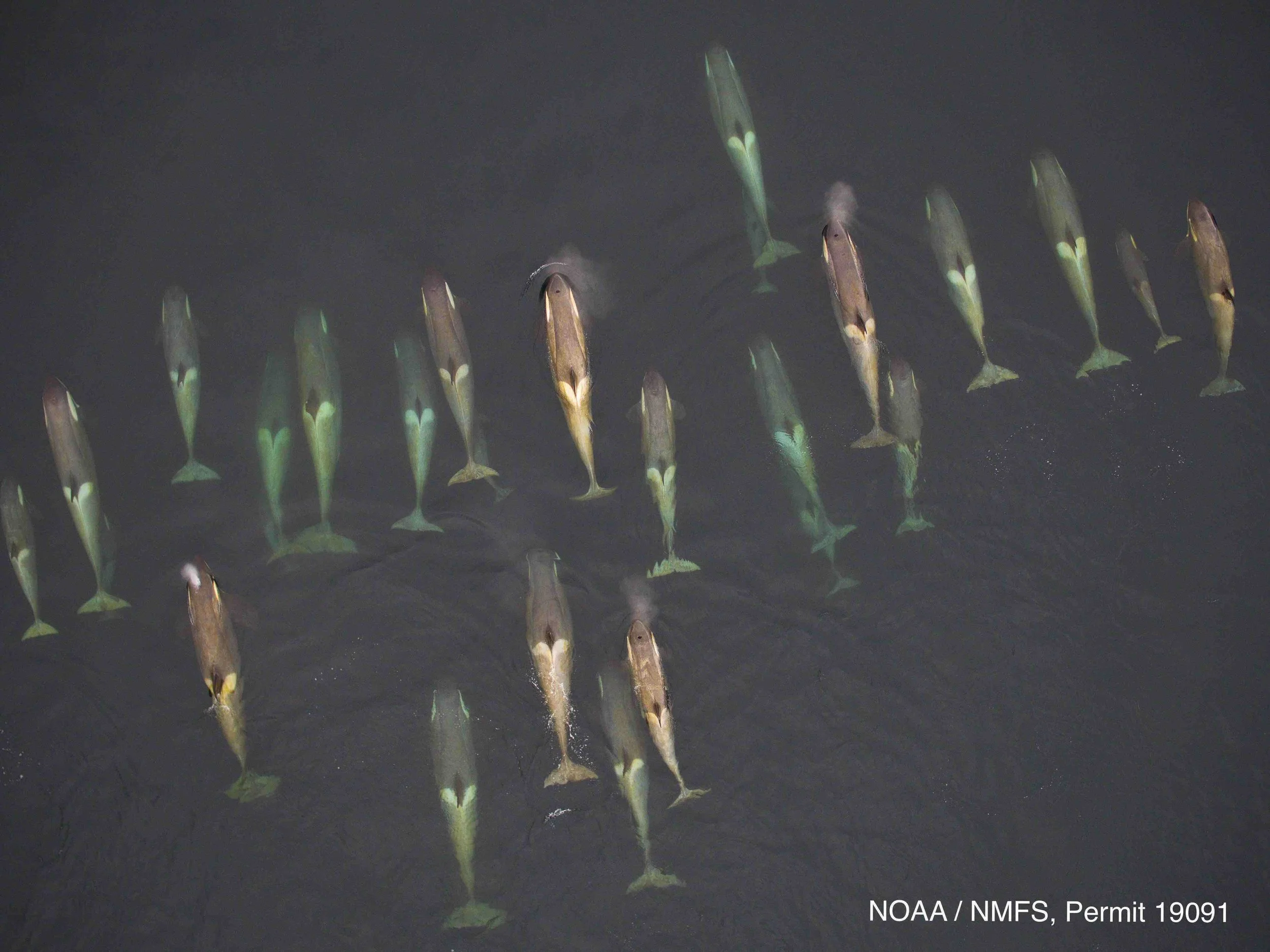 Aerial photograph of Type B2 killer whales in the coastal waters of the Antarctic Peninsula. Images obtained from >30m (100ft) above the whales using a small unmanned hexacopter. Research conducted under NMFS Permit No. 19091 and Antarctic Conservation Act Permit ACA 2017-029.