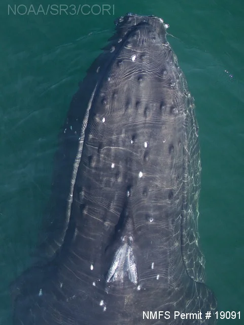 Aerial image of the head of a humpback whale taken during a blow sampling event (note the white scarring on the blowhole) around the San Juan Islands, Washington State. The image was collected using an unmanned hexacopter under NMFS permit #19091.